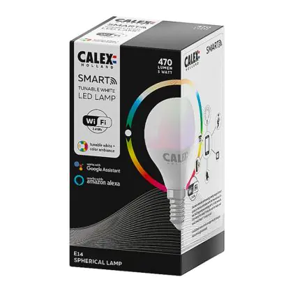 Je kunt er ook voor kiezen om meerdere Calex smart lampen te koppelen aan onder andere een Google Home of Amazon Alexa apparaat. Dit maakt het mogelijk om Calex verlichting via jouw eigen stemgeluid te bedienen. Door het geven van simpele instructies als; ‘Hey Google, dim de lamp eettafel’, heb je dit al snel geregeld! Tevens is deze kogelvormige E14 Calex Smart verlichting te bedienen via een officiële Calex Smart afstandsbediening. Verder werkt deze Calex lamp op een wandschakelaar, maar niet op een dimmerschakelaar. Ben je op zoek naar Smart verlichting met bijvoorbeeld een andere fitting of in een andere vorm? Klik dan hier om ons volledige assortiment te bekijken!