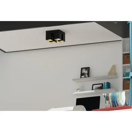 Beschrijving D'Lite Plafondlamp Kubo Aluminium Zwart | IP20 - Geschikt voor 4x GU10