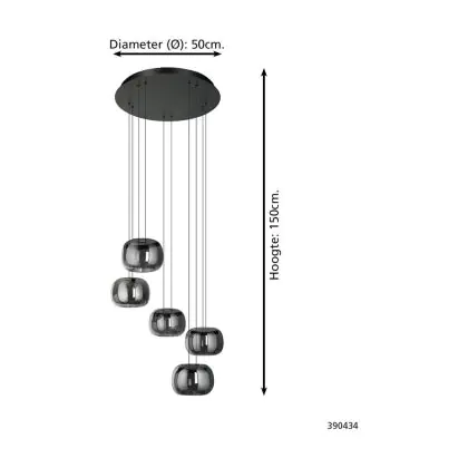 Beschrijving Eglo Hanglamp Hortunas Staal Zwart 5.8W 690lm - 830 Warm Wit | IP20 - Dimbaar