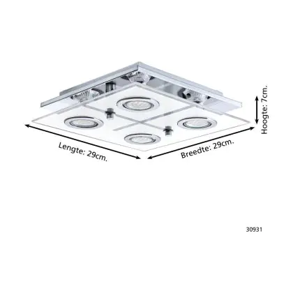 Beschrijving Eglo Plafondlamp Cabo Roestvrij Staal Chroom 4x2.8W 4x250lm - 830 Warm Wit | IP20 - Incl. 4x GU10