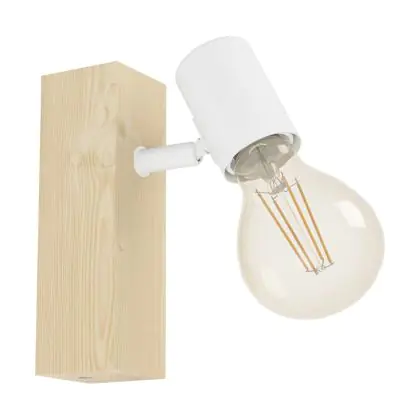 Beschrijving Eglo Wandlamp Townshend 3 Hout Staal Wit | IP20 - Geschikt voor 1x E27