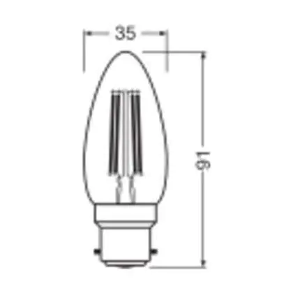 Beschrijving Ledvance Classic LED B22 Kaars Filament Helder 3.4W 470lm - 827 Zeer Warm Wit | Vervangt 40W
