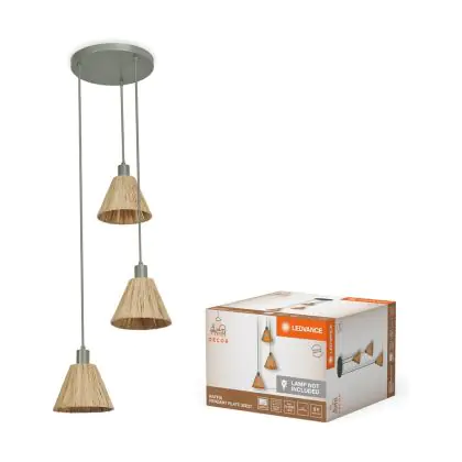Beschrijving Ledvance LED Hanglamp Decor Raffia Plate Bruin | Geschikt voor 3x E27