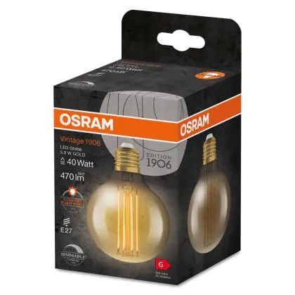 Beschrijving Ledvance Vintage 1906 LED E27 Globe Goud 5.8W 470lm - 822 Zeer Warm Wit | Dimbaar - Vervangt 40W