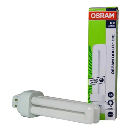 De Osram Dulux D/E is enkel te gebruiken in combinatie met een elektronisch voorschakelapparaat. De lichtbron is dimbaar. De Osram Dulux D/E 13W 840 lamp heeft een lengte van 131 cm en heeft een G24q-1 lampvoet, wat overeenkomt met 4 pinnen.