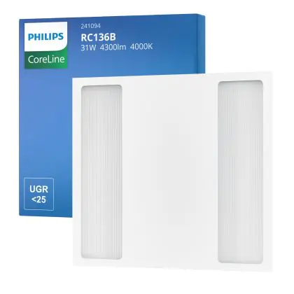 Beschrijving Philips LED Paneel CoreLine RC136B 22/31W 3100-4300lm - 840 Koel Wit | 60x60cm - UGR <25 - Dali Dimbaar - Selecteerbaar Wattage