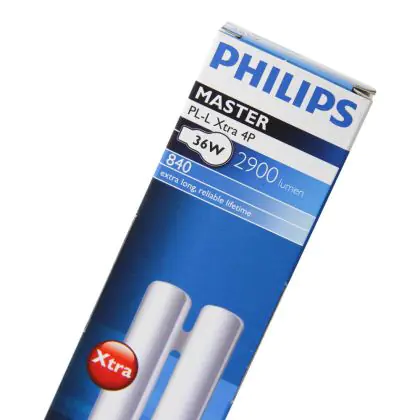 De Philips PL L Xtra 4P lampen zijn uitermate geschikt voor plaatsen waar vervanging van de lampen lastig en / of kostbaar is. Door de extreem lange levensduur hoeft u de lampen voor een lange tijd niet te vervangen. U herkent de PL lamp eenvoudig aan de 2G11 lampvoet met 4 pinnen. De lichtbron is 41,5cm lang. Op het moment dat de afmeting van uw huidige lamp sterk afwijkt van 41,5cm heeft u een ander wattage in gebruik. Bovendien is de lamp energie efficiënt, dankzij energielabel A. De lampen hebben een lange levensduur, gemiddeld tot wel 36000 branduren.