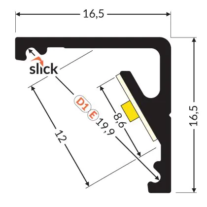 Beschrijving Topmet LED Profiel CABI12 E slide - 1m - Complete set - Zwart