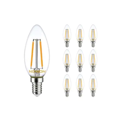 Beschrijving Voordeelpak 10x Noxion Lucent Filament LED Kaars B35 E14 2.5W 822-827 250lm | Dimbaar - Zeer Warm Wit - Vervangt 25W